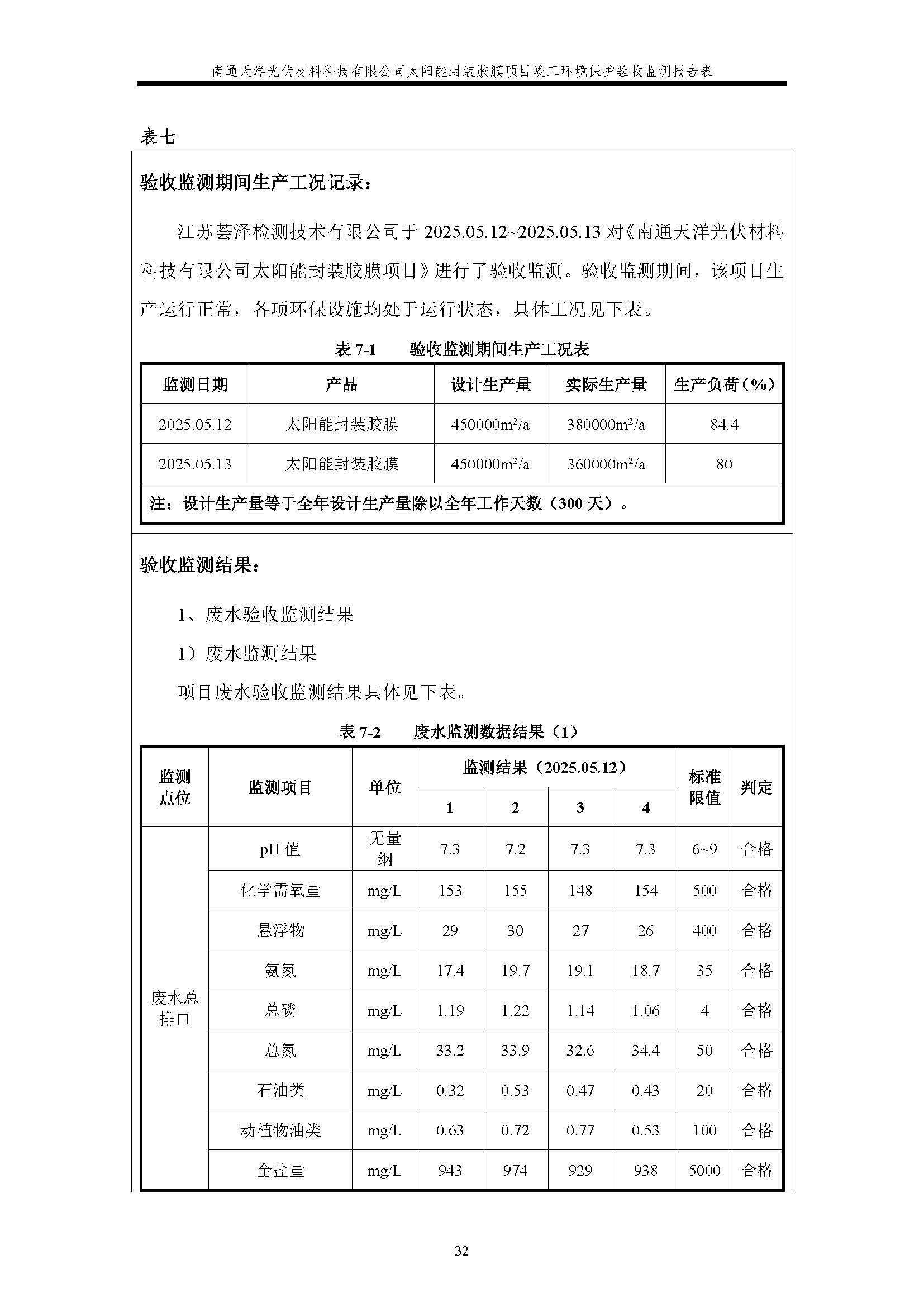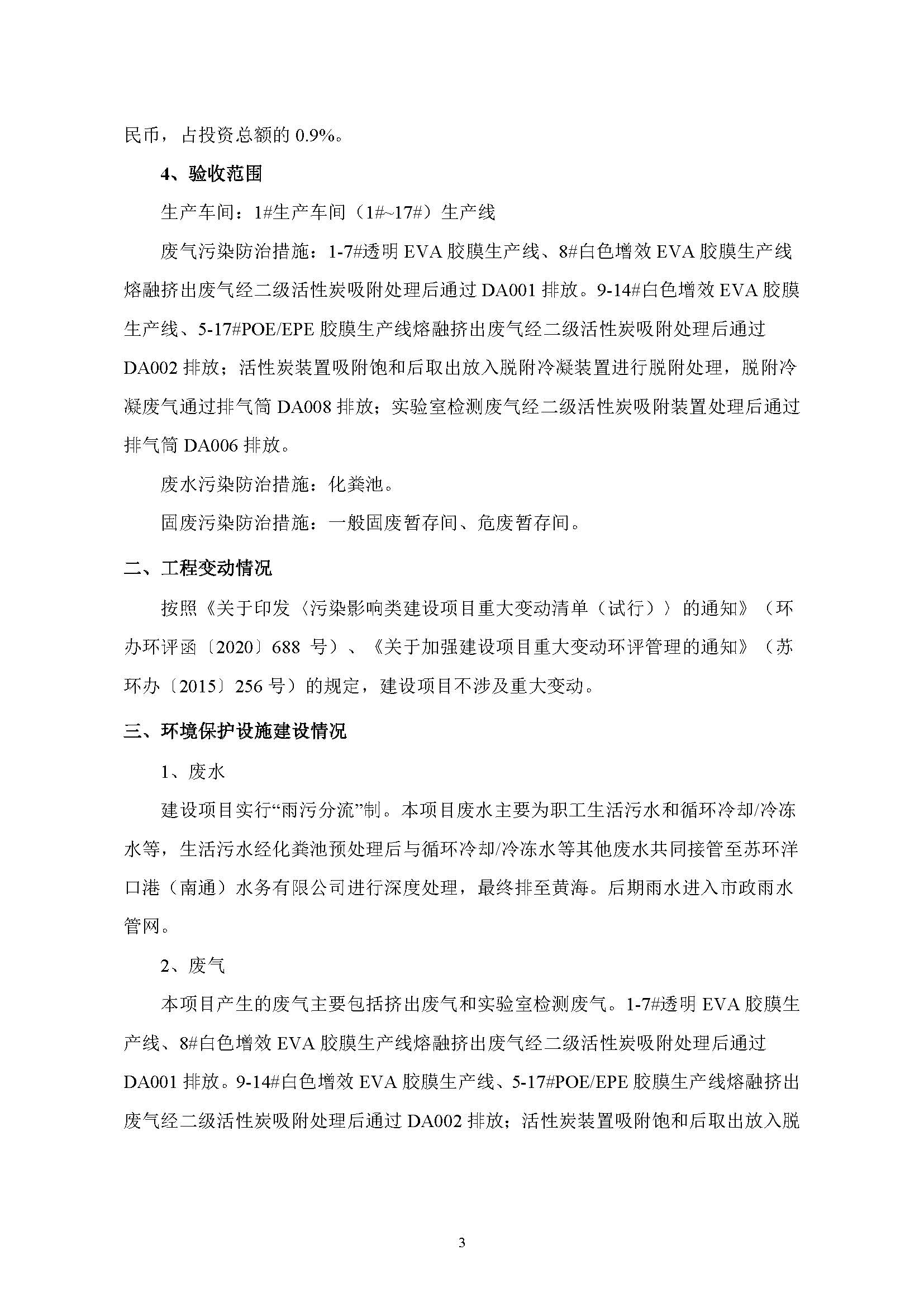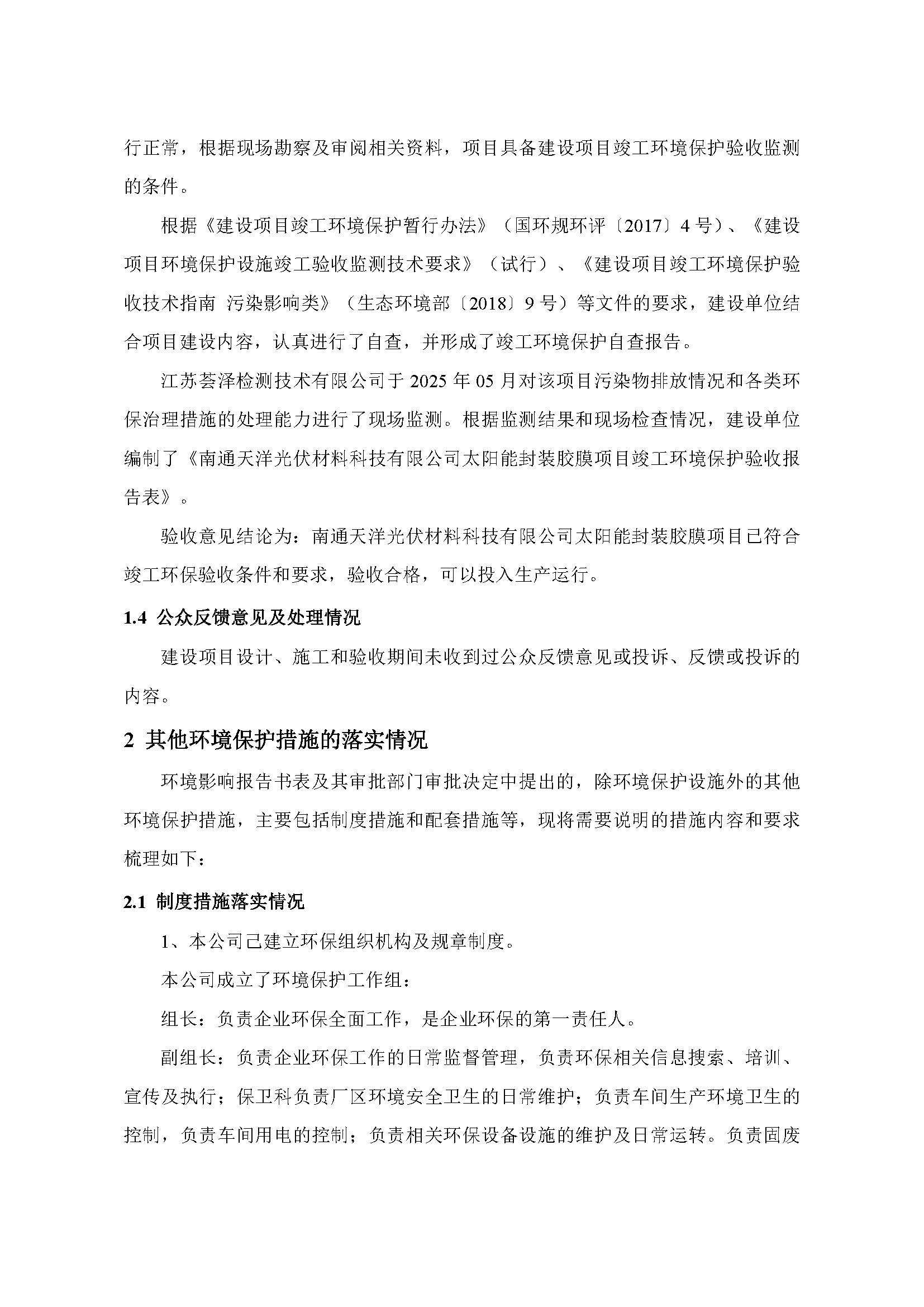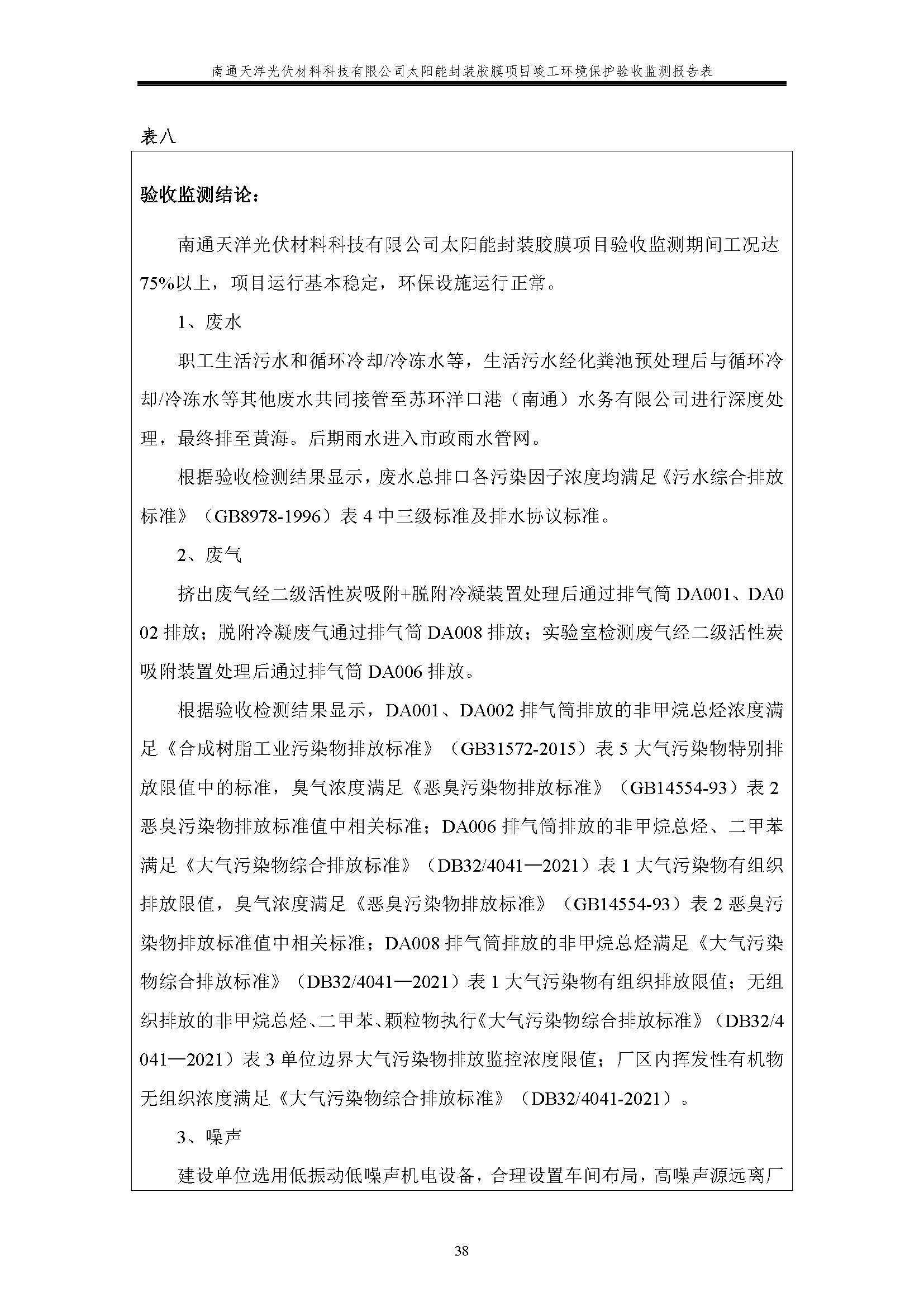 南通天洋光伏材料科技有限公司太阳能封装胶膜项目于2025年9月26日自主验收公示