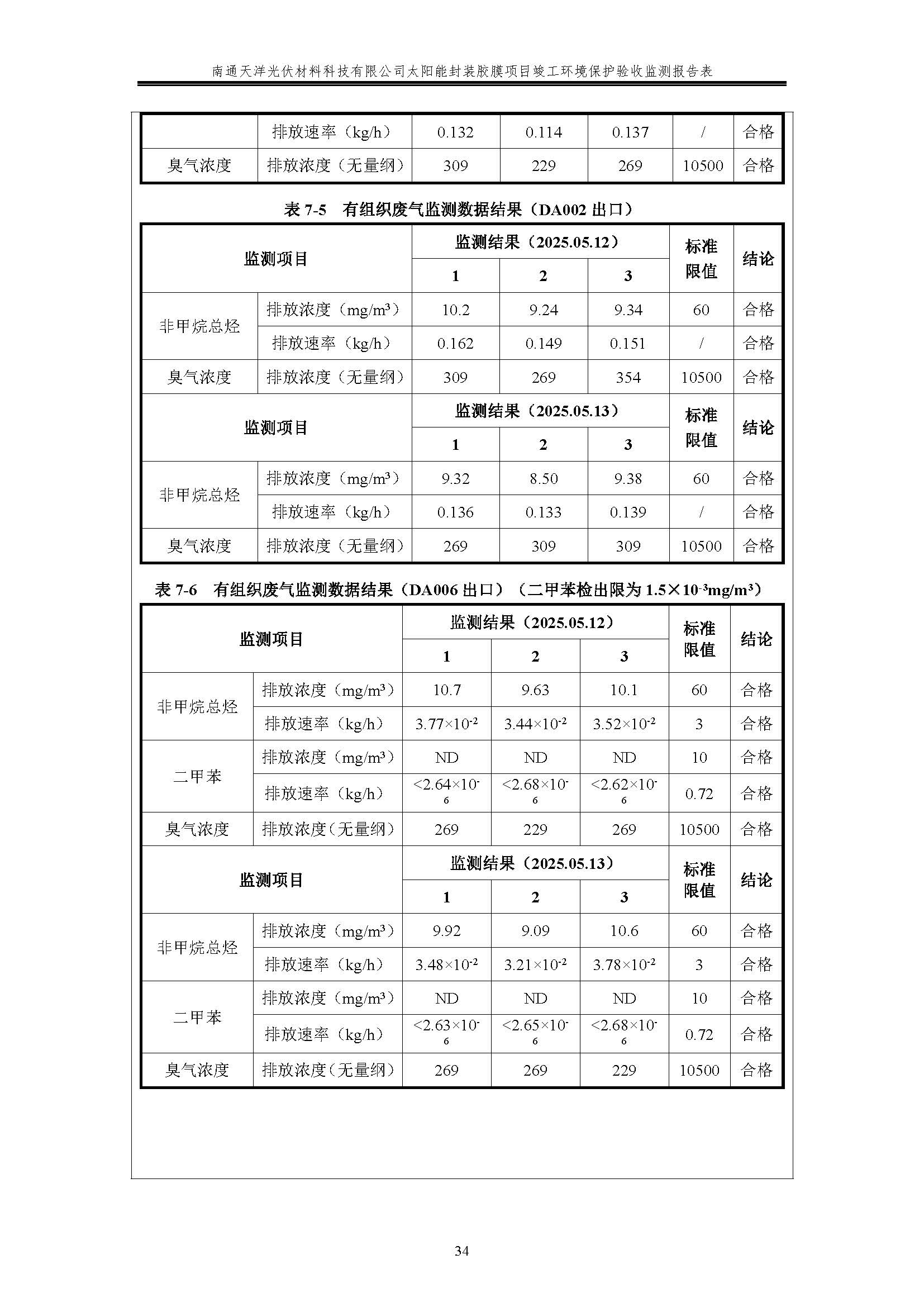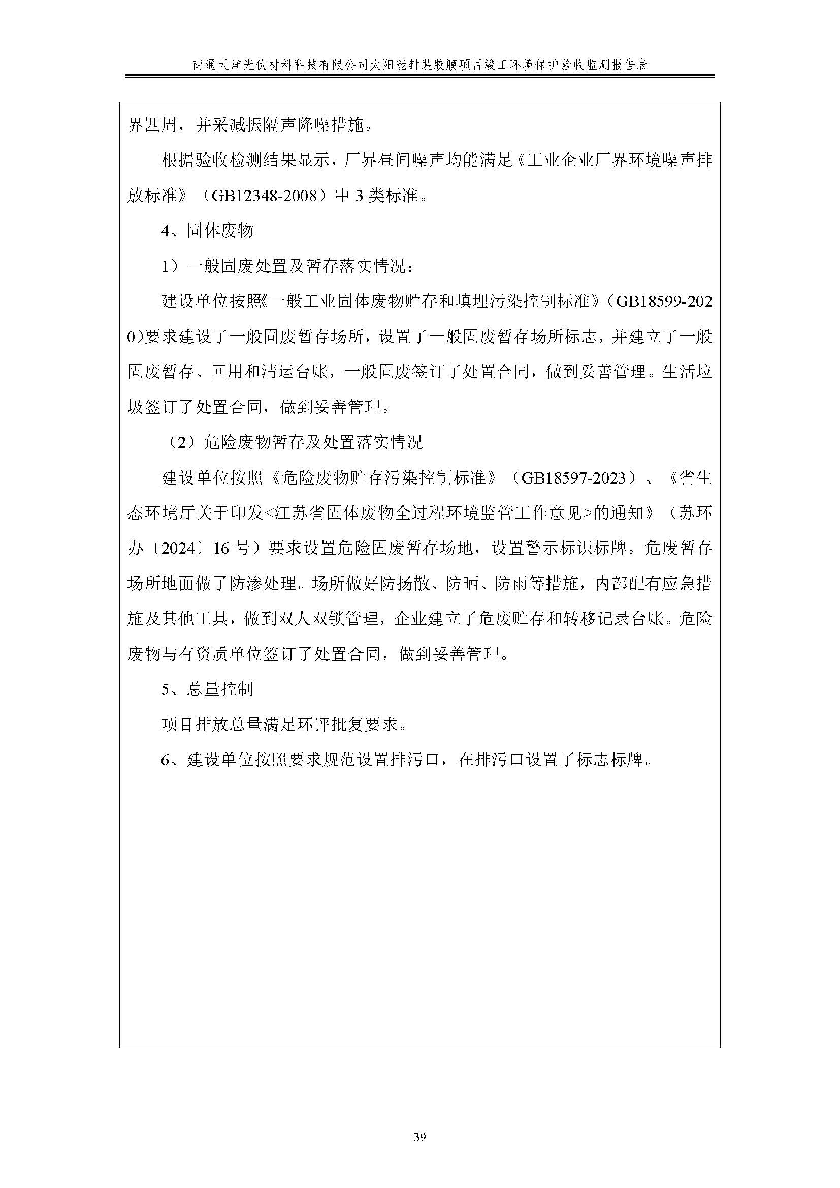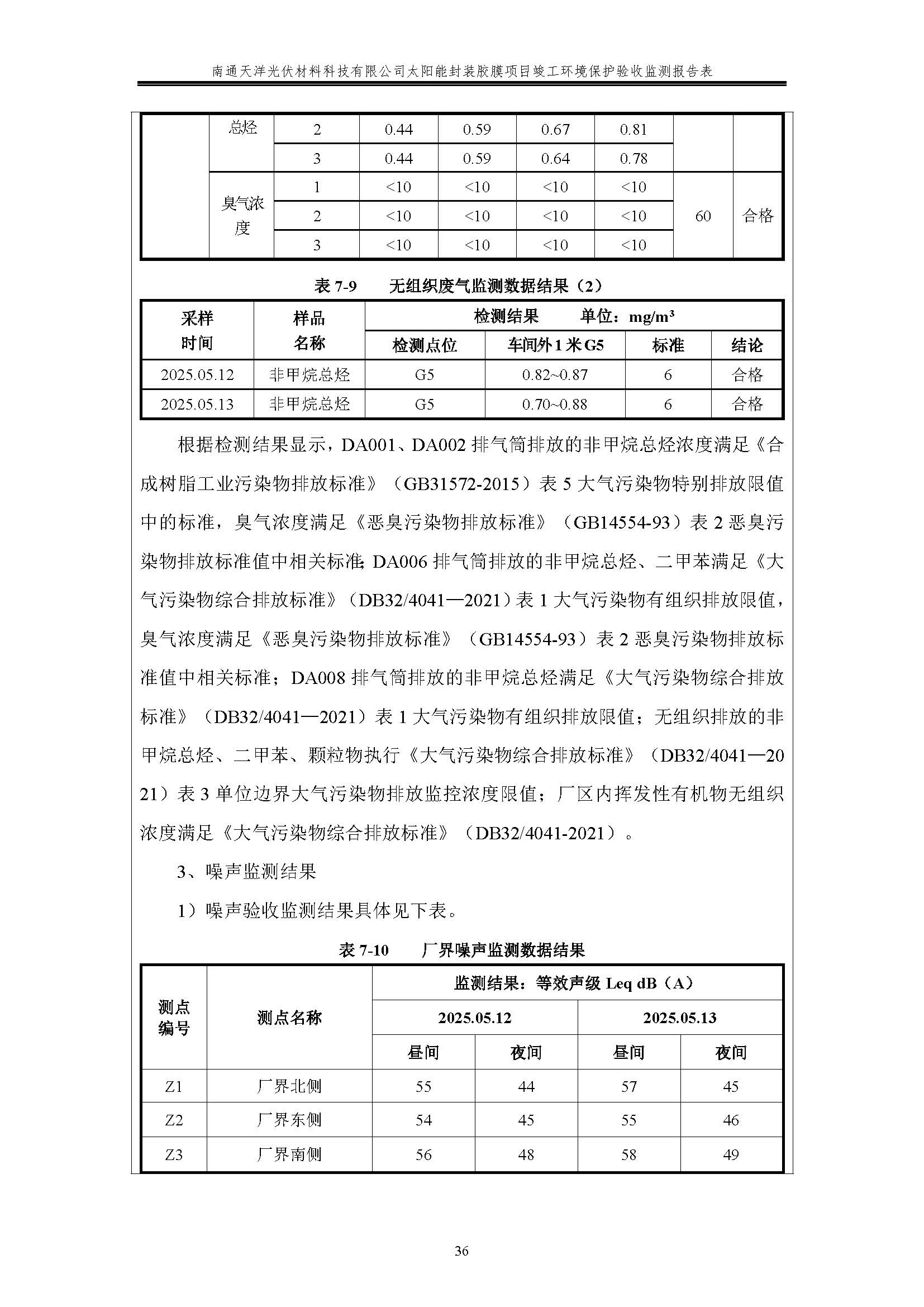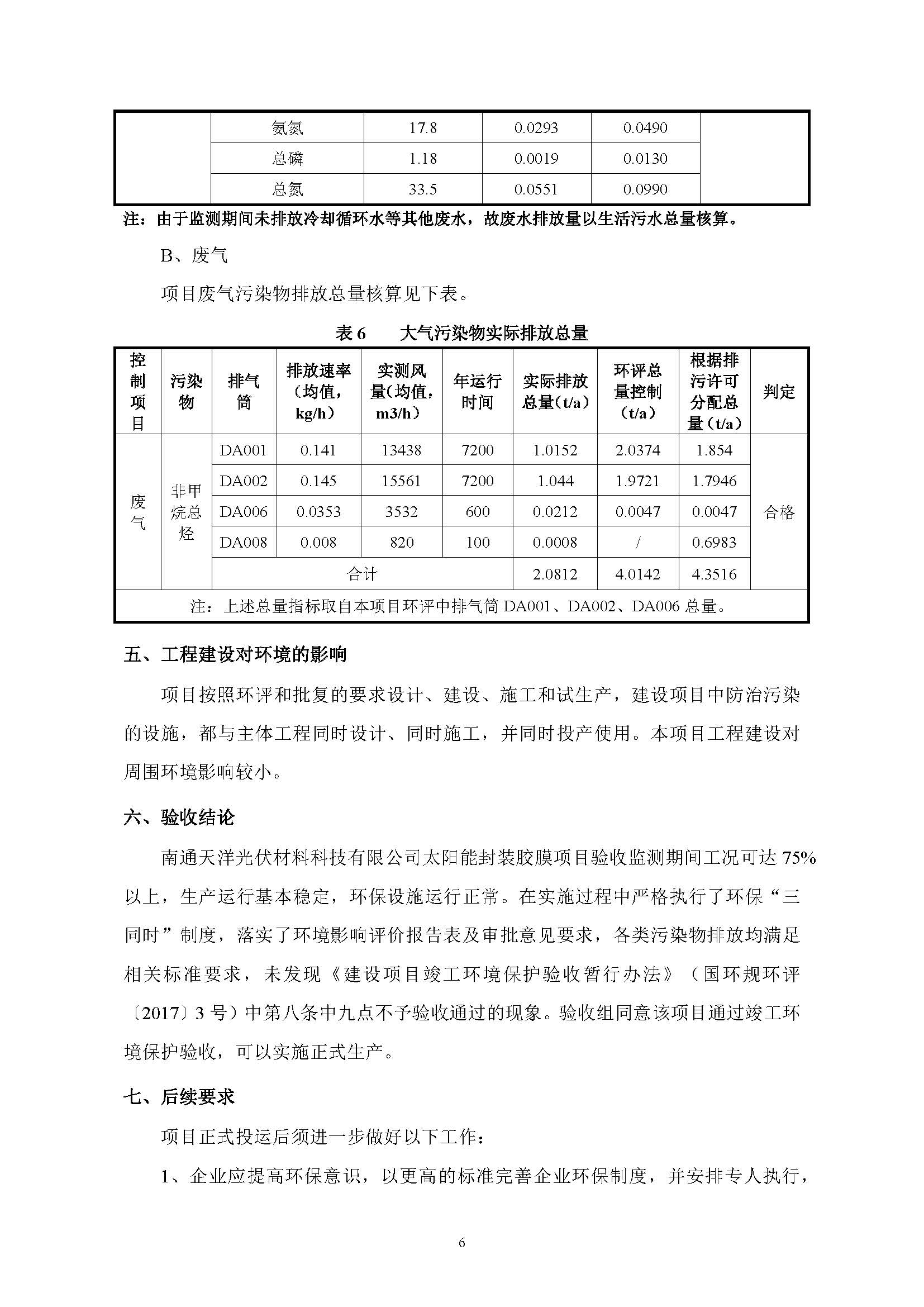 南通天洋光伏材料科技有限公司太阳能封装胶膜项目于2025年9月26日自主验收公示